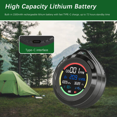 [6-em-1 e Design portátil] RV detector de monóxido de carbono detecta CO, O2, pressão atmosférica, altitude, temperatura, umidade em tempo real.pode ser colocado no bolso facilmenteTambém tem um cordão de 7,8 polegadas, pode ser pendurado e em pé.