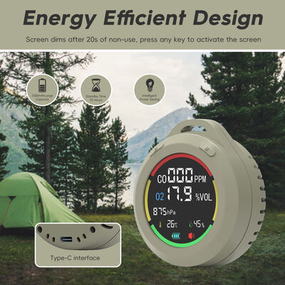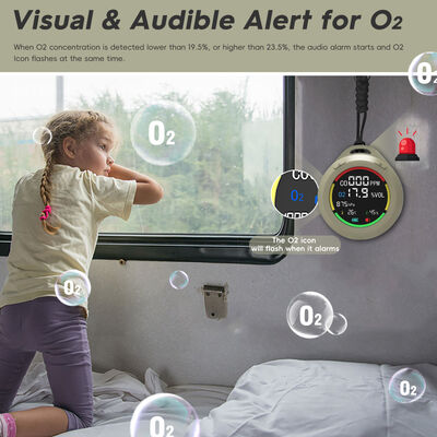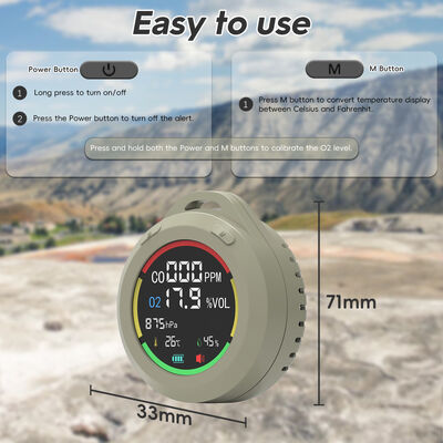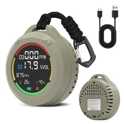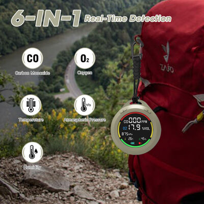 [6-em-1 e Design portátil] RV detector de monóxido de carbono detecta CO, O2, pressão atmosférica, altitude, temperatura, umidade em tempo real.pode ser colocado no bolso facilmenteTambém tem um cordão de 7,8 polegadas, pode ser pendurado e em pé.