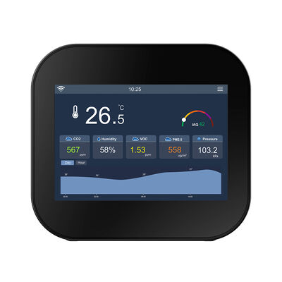 Melhore sua estratégia de qualidade do ar interior com o Monitor IAQ Profissional, projetado para precisão, integração e facilidade de uso. Este monitor de alto desempenho apresenta uma interface touchscreen responsiva combinada com suporte de comunicação multi-protocolo, tornando-o a solução perfeita para edifícios inteligentes, instalações industriais, campi educacionais e ambientes de saúde.