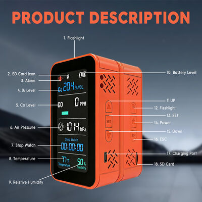Equipado com um display digital em tempo real, o detector oferece acesso instantâneo às concentrações de gás e dados ambientais, facilitando o acompanhamento da qualidade do ar e a tomada de medidas imediatas quando necessário. Seja trabalhando em espaços confinados, zonas de alto risco ou ambientes industriais externos, o Detector Multi-Gases oferece tranquilidade com seus alarmes sonoros e visuais, longa duração da bateria e design robusto que pode suportar até as condições mais difíceis.