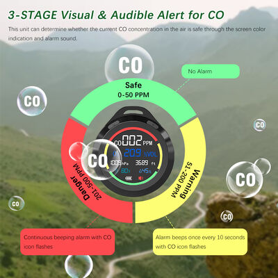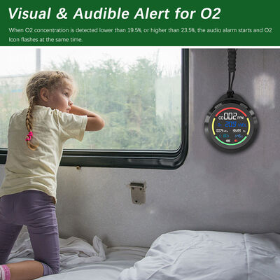 [6-em-1 e Design portátil] RV detector de monóxido de carbono detecta CO, O2, pressão atmosférica, altitude, temperatura, umidade em tempo real.pode ser colocado no bolso facilmenteTambém tem um cordão de 7,8 polegadas, pode ser pendurado e em pé.